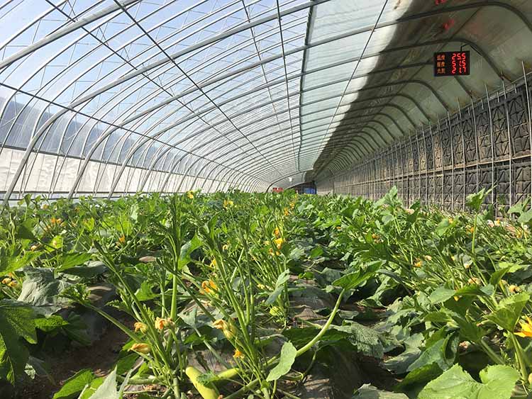 1. 該溫室由全鋼骨架、蓄熱水箱、雙膜單被等裝配而成,結(jié)構(gòu)輕便,采光角度科學(xué)合理,實現(xiàn)了通風(fēng)和卷簾的自動控制。具有采光和保溫性能好、蓄放熱量大、承載力強等特點。