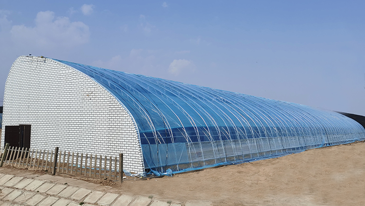 1. 該溫室由全鋼骨架、蓄熱水箱、雙膜雙被等裝配而成,結構輕便,采光角度科學合理,實現了通風和卷簾的自動控制。具有采光和保溫性能好、蓄放熱量大、承載力強等特點。