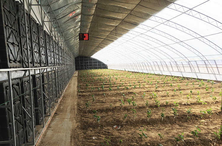 1.該溫室由全鋼骨架、蓄熱水箱、雙膜單被等裝配而成,結構輕便,采光角度科學合理,實現了通風和卷簾的自動控制。具有采光和保溫性能好、蓄放熱量大、承載力強等特點。