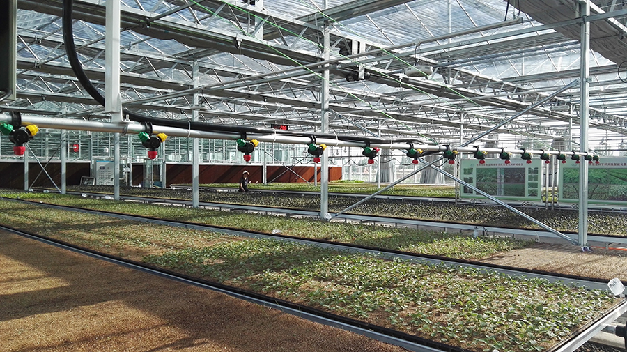 蔬菜集約化育苗裝備及技術采用配套苗床、軌道式噴灌系統、環流系統、優質基質、補光系統等設施設備,并通過嚴格的溫濕光系統環境控制從而達到育苗生產的標準化、產業化生產。