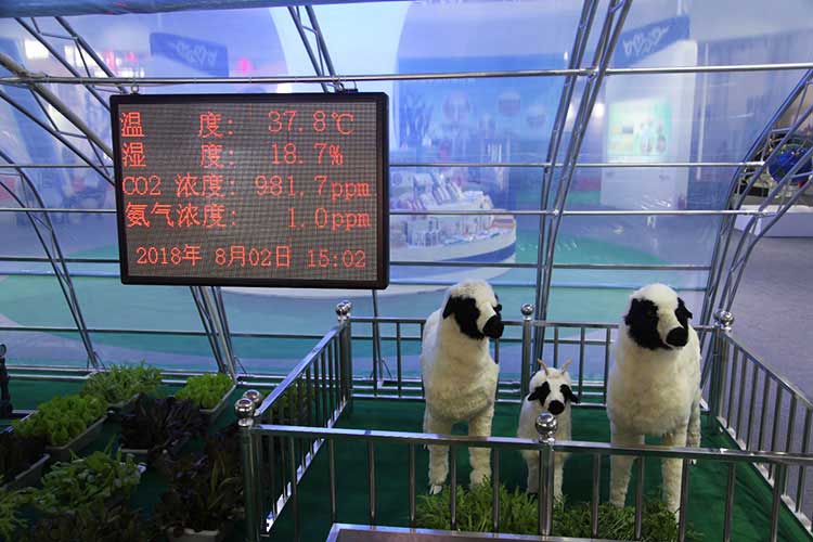 參展商喬曉雪介紹,智能棚舍可以科學設定適合牛羊生長的光照、溫度和濕度,棚舍內安裝的監測器24小時實時監控。當發現舍內環境不適宜時,將自動開啟通風換氣系統,實現了牛羊養殖的機械化、自動化智能化,解決了冬季保溫、母畜接羔成活率、掉膘、飲用溫水等問題,實現了節約人力和有效生產。